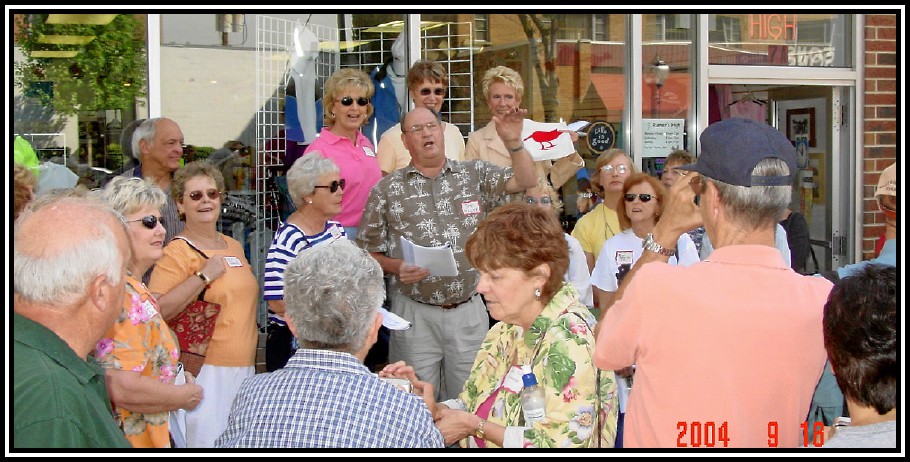 We know that is Dan Raupp in the middle surrounded by Ann (Carlisle)Garnett, Nancy (Parson)Ewart, Patty (Mahler)McDonald, Kathy Stromberg - right of Dan is back to us in blue plaid is Anna Marie Yates, orange top is Barbara (Muhly)Plambeck, flowered orange is Jean (Ewert) Moskoff. Melon color back to us is Dick Plambeck